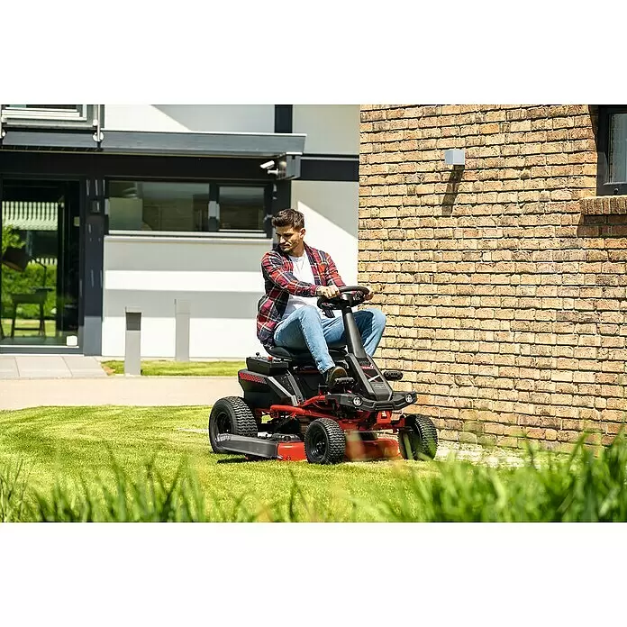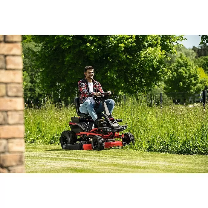 - Das komfortable und wartungsarme Hydrostatikgetriebe kann stufenlos reguliert werden