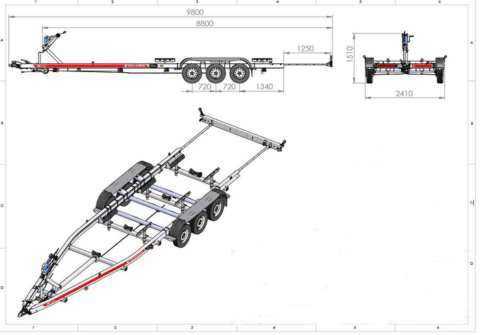 REMORQUE EN ALUMINIUM Ă TROIS ESSIEUX POUR LE TRANSPORT DE BATEAUX UNITRAILER SAIL 3500/3 ALU PTAC 3500 KG