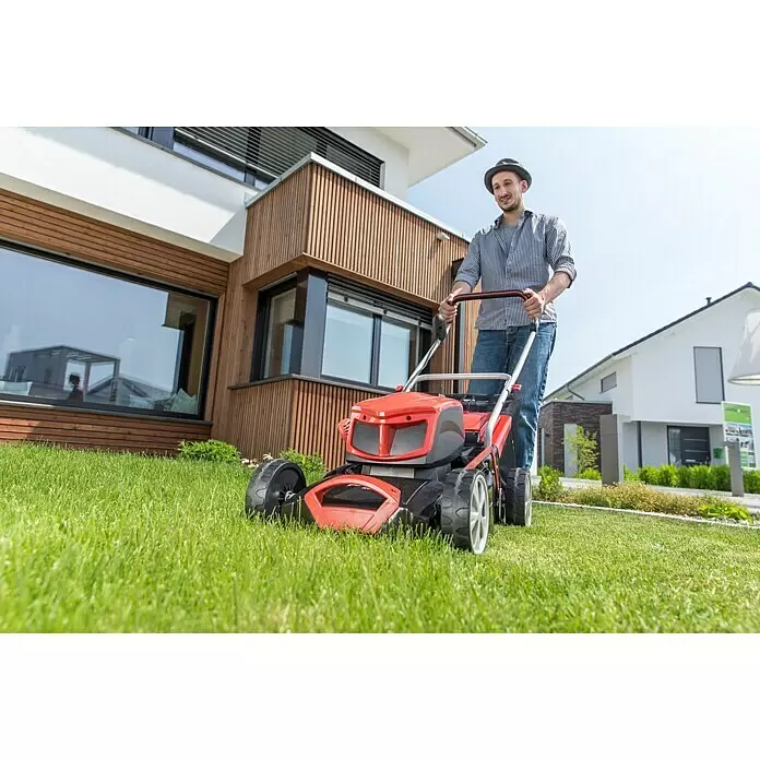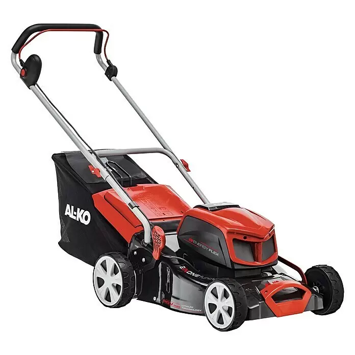 Der Energy Flex Akku-Rasenmäher 42.9 Li von AL-KO mit einer Schnittbreite von 42 cm eignet sich optimal für Grasflächen von bis zu 400 m². Die Schnitthöhe ist 7-fach per Einzelrad von 25 bis 75 mm einstellbar. Angetrieben wird der Rasenmäher mit dem leistungsstarken 40 V/4 Ah Li-Ion Akku der EnergyFlex Familie. Der ergonomisch geformte Führungsholm, die angenehme Gummierung im Griffbereich und die und kugelgelagerte Räder bieten zusätzlichen Komfort beim Arbeiten. Durch den robusten Fronttragegriff lässt sich der Akku-Rasenmäher einfach transportieren. Dank dem 60 l großen Fangkorb mit Füllstandsanzeige muss der Rasenschnitt seltener geleert werden.