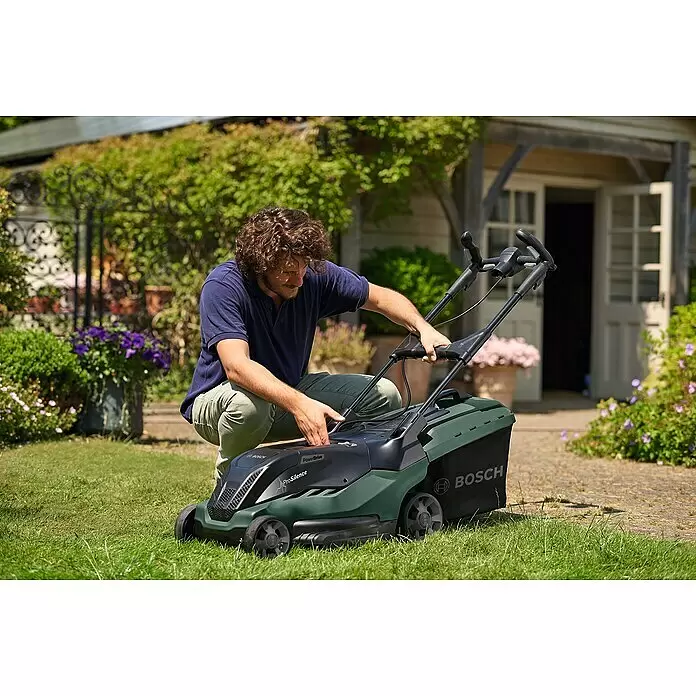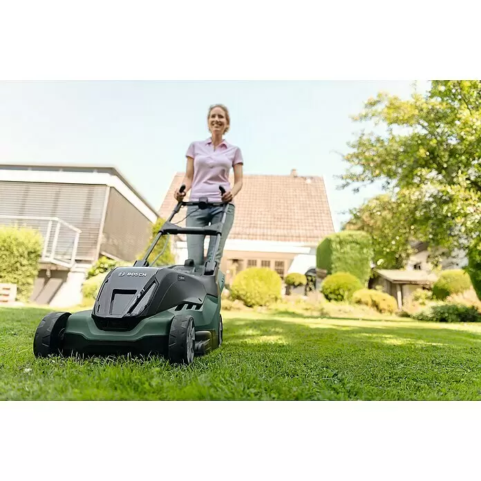 Der Bosch Akku-Rasenmäher AdvancedRotak 36-660 mit einer Schnittbreite von 40 cm eignet sich ideal für Rasenflächen bis zu 660 m². Dank seiner ProSilence-Funktion arbeitet er mit einer bis zu 30 % reduzierten Geräuschemission und filtert unangenehme Geräusche heraus. Seine voll integrierte und einfach zu bedienende Höhenverstellung sowie die Ergoflex-Handgriffe sorgen für ein komfortables und rückenschonendes Mähen. Dank seinem Rasenkamm ist randnahes Mähen an Mauerrändern und Kanten möglich. Im Lieferumfang ist ein Grasfangkorb enthalten, welcher einfach zu entleeren ist und nach Gebrauch zusammengefaltet werden kann. Das Mähdeck-Design und die LeafCollet-Messer sorgen für ausgezeichnete Schnitt- und Sammeleigenschaften. Angetrieben wird der Bosch Rasenmäher von zwei 36 V 2 Ah Li-Ionen Akkus.