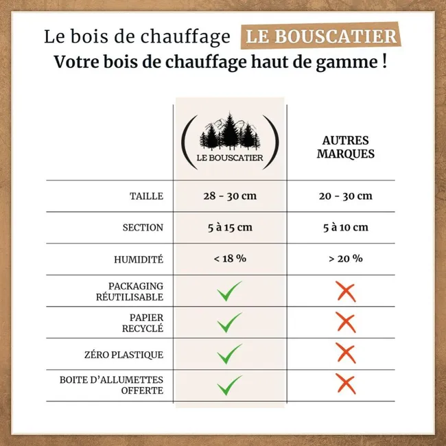 Palette de bois fendu 33 CM – Bois : Mélange feuillu : chêne / hêtre / frêne / châtaignier Cubage : 1,05M3 = Une palette de bois de chauffage fendu en 33cm = 1,5 Stères Bois bûche de qualité supérieure Explication : Le volume d’un stère de bois rangé représente en 50cm, un volume de 0,8m3. Lorsque le bois est coupé en longueur de 33cm le volume d’un stère de bois est de 0,6m3. Plus le bois de chauffage est coupé court, mieux il s’empile et il y a moins de vides entre les bûches, le volume apparent diminue mais la quantité de bois reste la même. Pour une utilisation immédiate dans votre appareil de chauffage, le bois est sec pour garantir le meilleur rendement de l’appareil de chauffage et un encrassement minimum du conduit de cheminée. Le mélange est uniquement constitué de hêtre, charme, chêne, les essences les plus calorifiques pour le bois de chauffage Le bois de chauffage français : Qualité, Durabilité et Chaleur pour votre Foyer Le bois de chauffage est depuis longtemps un choix privilégié pour chauffer nos foyers, que ce soit dans une cheminée, un poêle à bois, un insert ou même un brasero. Parmi les nombreuses options disponibles sur le marché, le bois de chauffage fabriqué localement en France se distingue par sa qualité exceptionnelle. Fabrication Locale Française : La Garantie d’une Qualité Supérieure Nos forêts abondantes regorgent de bois feuillus tels que le chêne et le hêtre, réputés pour leur densité et leur capacité à brûler longtemps et de manière homogène. Opter pour le bois de chauffage français, c’est soutenir l’économie locale tout en bénéficiant de produits de haute qualité. Bois Sec : L’Essentiel pour un Chauffage Efficace Lorsque vous choisissez du bois de chauffage français, vous pouvez vous attendre à un bois sec et bien préparé. Le bois sec est essentiel pour garantir une combustion propre et efficace, réduisant ainsi la formation de créosote dans votre cheminée ou poêle à bois. Notre bois est rangé et préparé avec soin, prêt à l’emploi dès sa livraison. La Livraison en Palette, Box ou Carton : Facilité et Confort Nous comprenons que le transport du bois de chauffage peut parfois être un défi. C’est pourquoi nous proposons des options de livraison pratiques, notamment en palette, en box ou en carton. Vous pouvez choisir la méthode qui convient le mieux à vos besoins, tout en ayant l’assurance que votre bois de chauffage de qualité sera livré directement chez vous. En résumé, le bois de chauffage français offre une solution idéale pour chauffer votre foyer. La fabrication locale, la qualité du bois sec, les essences de chêne et de hêtre, ainsi que les options pratiques de livraison en font un choix incontournable pour ceux qui recherchent une source de chaleur durable et authentiquement française. Pour en savoir plus sur notre entreprise et nos produits de bois de chauffage, contactez-nous dès aujourd’hui. Faites le choix du bois de France pour un hiver chaleureux et responsable. Conditions générale de livraison : Notre prestation ne nécessite qu’une seule personne à la réception de l’émargement des bons de livraison. Nous demandons de bien vouloir vous assurer de la possibilité d’accès de notre véhicule ( poids lourd 19 tonnes ) jusqu’à l’endroit où le chauffeur devrai stationner. Si il n’est pas possible de livrer en camion poids lourd 19 tonnes, une majoration de livraison sera obligatoire pour accéder avec un petit camion. La livraison reste sous la responsabilité du conducteur, seule personne apte à juger de la sécurité de l’exécution de la prestation dans de bonne conditions. Notre engagement se limite à la dépose des produits dans le premier endroit sécurisé susceptible de les accueillir. Nous ne serons en aucun cas tenus pour responsables d’éventuels dégâts, de quelque nature que ce soit, survenue dans l’enceinte de la propriété du destinataire. Nous déclinons toute responsabilité en cas d’impossibilité d’accès à l’adresse de livraison. Nous vous demandons de bien vérifier vos accès ainsi qu’une potentielle restriction de tonnage dans votre rue. Vous devez donc prendre vos dispositions pour pouvoir réceptionner votre palettes et les transporter par vos propres moyens.