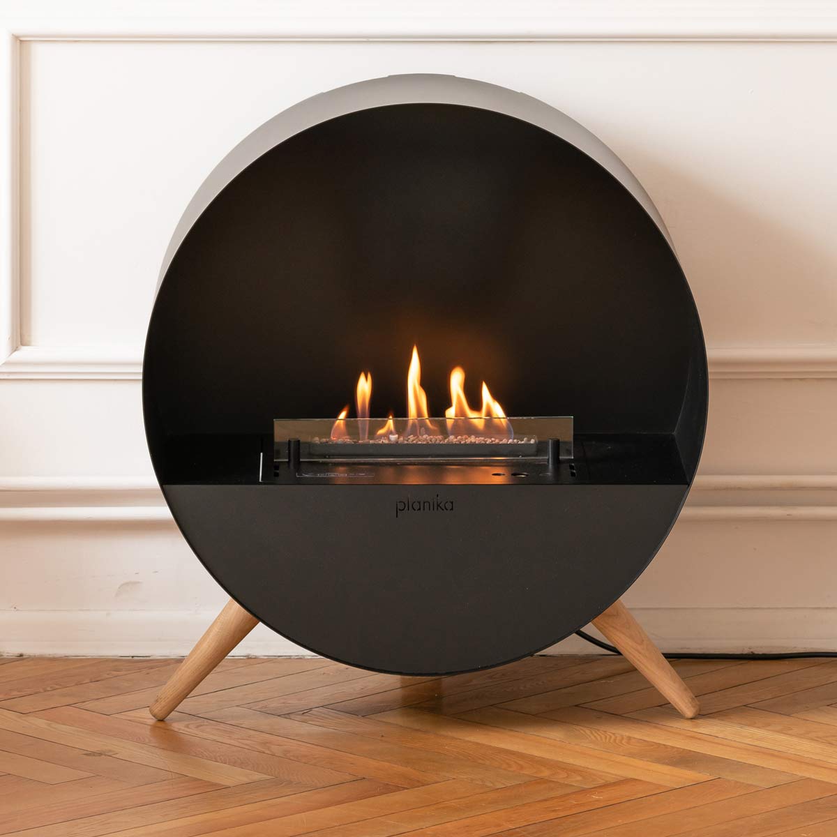 Avec son design élégant, Chantico Fireglass est un objet de décoration original et pratique. Composée d’une base en acier noir mat, d’une vitre cylindrique et de pierres blanches amovibles, cette cheminée de table signée Planika se démarque par ses traits minimalistes.