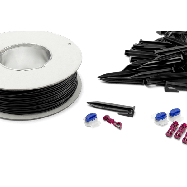 - Le kit d’installation taille L est particulièrement adapté aux modèles 430X – 440 – 450X ou pour des surfaces jusque 5000m² : il comprend 400 mètres linéaires de câble périphérique; 600 piquets de fixation; 5 connecteurs de serrage de câble; 5 raccords de fil périmétrique