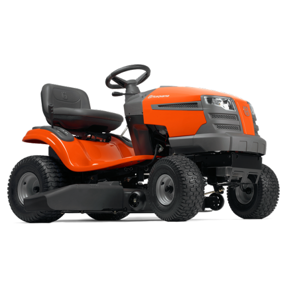 Modèle à éjection latérale équipé d’un carter de coupe de 107 cm et d’une boîte hydrostatique commandée par levier.