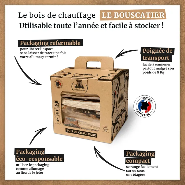 9,90 €12,90 €Nous avons à coeur de promouvoir une marque familiale, responsable de l’environnement et proposant des produits de qualités supérieures. Notre bois de chauffage est idéals pour votre feu de bois : 100% naturels nos buches sont fabriqués dans notre unité de production dans les Alpes-de-Haute-Provence en France. Notre arrivage de bois est local et 100% […]
